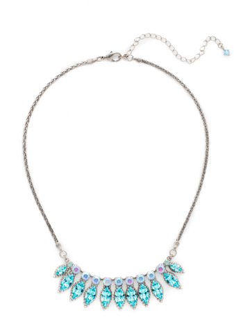 Dazzle your neck witht this stunning 22 inch antique silver finish chain with "teal textile" sparking stones in a navette cut.